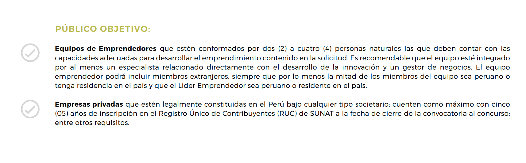 ALCANCE: Nacional (Perú). En el caso de los proyectos de investigación semilla cualquier distrito distinto a Lima metropolitana.