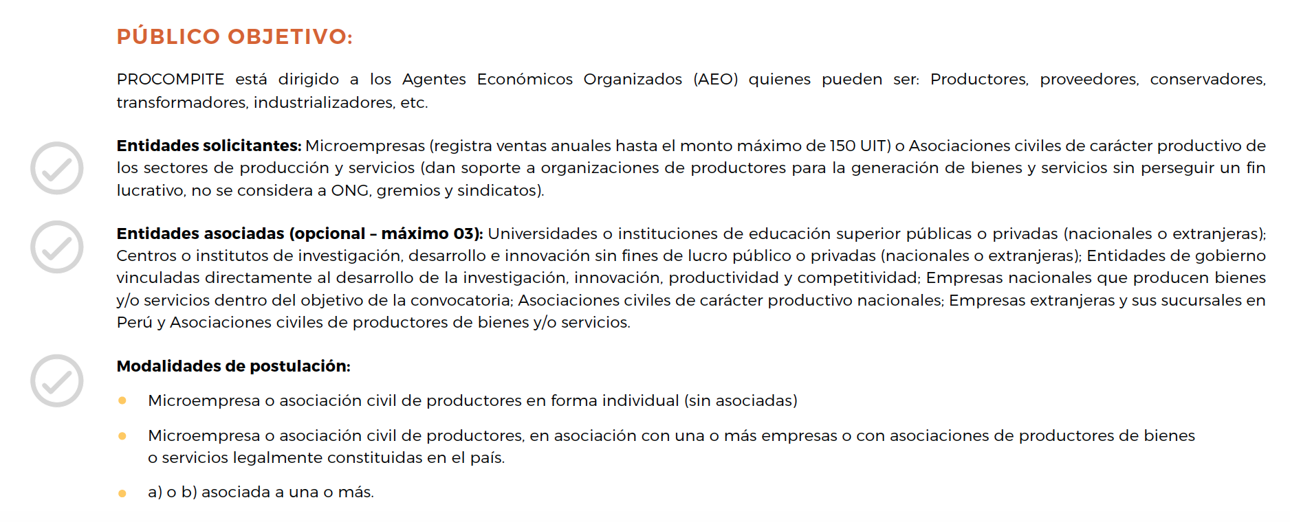 FINANCIAMIENTO: Monto máximo de S/ 80 000 a S/ 150 000 soles (50% a 75% del presupuesto total)