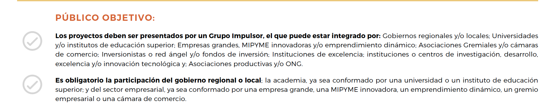 FINANCIAMIENTO: Monto máximo de S/ 800 000 a S/ 1 000 000 soles (70% del presupuesto total)