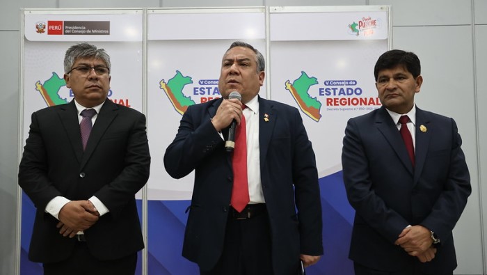 «La mandataria ha dispuesto que para el año 2025 ningún gobierno regional tenga un presupuesto menor al que recibió en el 2024. De la misma manera, se viene trabajando para que los gobiernos locales puedan ejecutar al menos un proyecto en el ejercicio 2025. Estamos hablando de 1800 gobiernos municipales, aproximadamente 200 gobiernos provinciales y 26 gobiernos regionales», indicó el jefe del Gabinete Ministerial tras la sesión plenaria del V CER que lideró la jefa de Estado.
