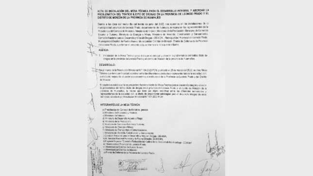 El viceministro de Gobernanza Territorial, Jesús Quispe Arones, de la Presidencia del Consejo de Ministros (PCM), instaló la Mesa Técnica para el desarrollo integral y abordar la problemática del tráfico ilícito de drogas en la provincia de Leoncio Prado y el distrito de Monzón, de la provincia de Huamalíes, en el marco de la Resolución Ministerial N°104-2022-PCM, publicada el 29 de marzo del 2022.