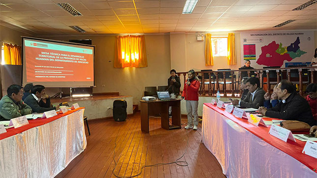 En el marco de la Mesa Técnica para el Desarrollo Integral de la Provincia de Vilcas Huamán en el departamento de Ayacucho, se realizó una nueva sesión, que contó con la participación de autoridades locales, distritales y representantes de las instituciones privadas de la jurisdicción, donde se presentó el Plan de Trabajo a cumplir en los siguientes meses e instaló los subgrupos de trabajo a cargo del desarrollo de funciones específicas.