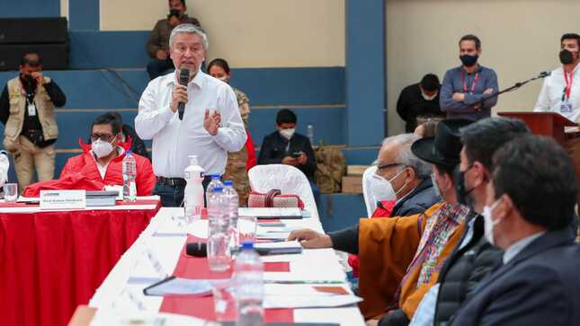 Tras la reunión, el premier Aníbal Torres visitó la institución educativa José Encinas Franco y participó de un encuentro con la población de Acobamba en Huancavelica, el cual fue presidido por el jefe de Estado, Pedro Castillo.