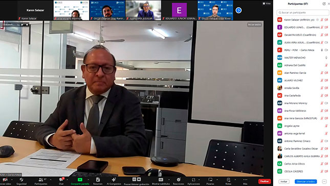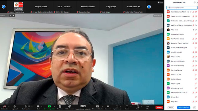 En este primer webinar, denominado “Indicadores Territoriales en el marco de la OCDE”, participaron más de cien funcionarios públicos. Cabe señalar que, la conferencia fue promovida por la Secretaría de Descentralización, por encargo del Viceministerio de Gobernanza Territorial, en el marco de la coordinación de las acciones del Comité de Políticas para el Desarrollo Regional, el cual forma parte de los 24 Comités evaluadores de acuerdo a la Hoja de Ruta del proceso de adhesión del Perú a la OCDE.