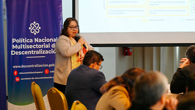 La Política Nacional Multisectorial de Descentralización será la Hoja de Ruta para los próximos años, anunció la secretaría de Descentralización, Mabel Gálvez Gálvez, durante el inicio del Taller N° 39 de la PNMD organizado por la subsecretaria de Promoción del Desarrollo Territorial de la SD.